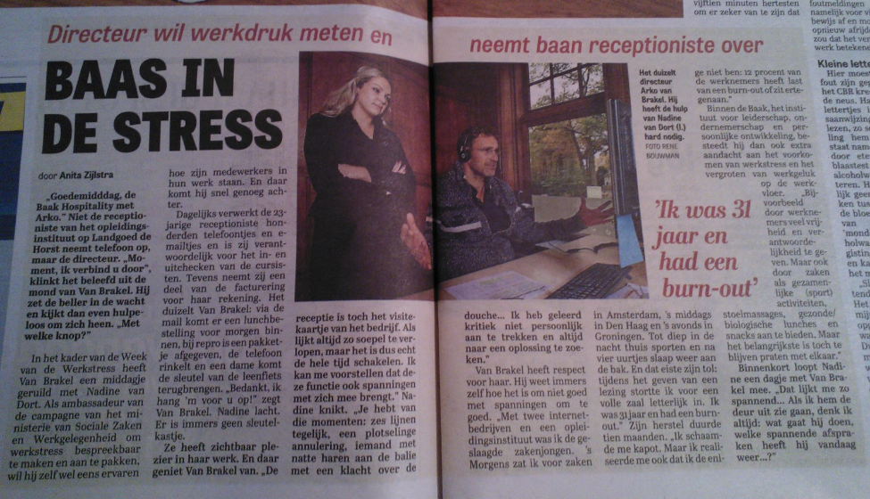 Plezier op je werk houdt stress ver weg. Onder meer Arko van Brakel (directeur van De Baak) en het management van het Elkerliek Ziekenhuis deden mee aan een ‘jobswap’. - Woensdag 5 november - Check Je Beweging.